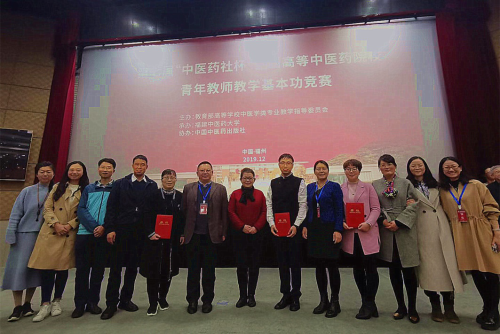 2019年12月20-22日,由教育部中医学教学指导委员会主办,福建中医药大学承办的第七届“中医药社杯”全国高等中医药院校青年教师教学基本功竞赛在福州举行。来自全国35所中西医高等院校的164名选手,分为中医基础初中级组、中医基础高级组、中医临床初中级组、中医临床高级组、西医初中级组、西医高级组六个组别进行比赛,各组分设一等奖1名,二等奖4名,三等奖8名,教学设计、教学论文、现场教学单项奖各1名及优秀奖若干。我校六位中医学类专业课任课教师参加竞赛,邰先桃教授、李兆福教授担任竞赛评委。